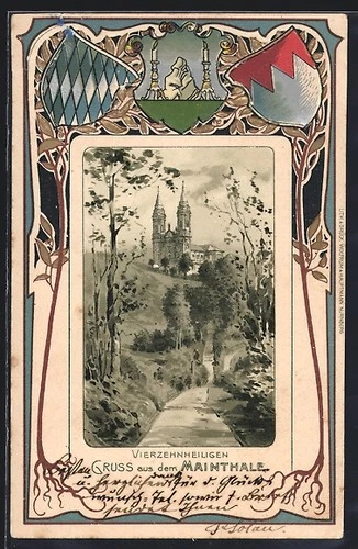 Mat lithograph Vierzehnheiligen / Main Valley, view from a path to D