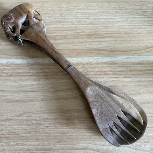 Vintage Wooden Hand Carved Elephant Salad Servers Ethnic Rustic 28cm Never Used