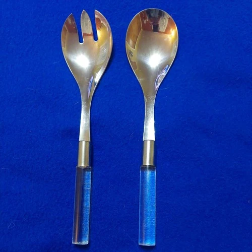 Mid- Century Modern Japan Salad Servers Frontier Forge Lucite Handles Stainless