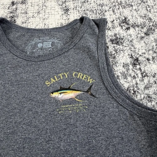 Salty Crew Boys Youth Size Medium Loose Fitting Gray Tank Top Fish Fishing Sea