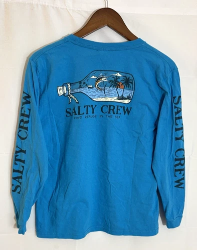Salty Crew Boy's Large Find Refuge In The Sea Blue Long Sleeve Graphic T-Shirt