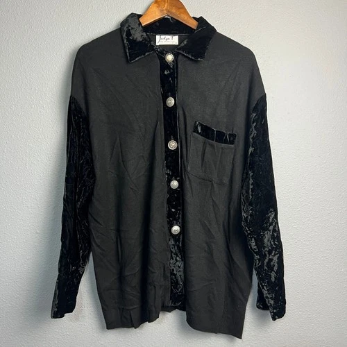 Jaclyn T San Francisco 1X Black Velvet Trim Whimsigoth Grunge Button Down Shirt
