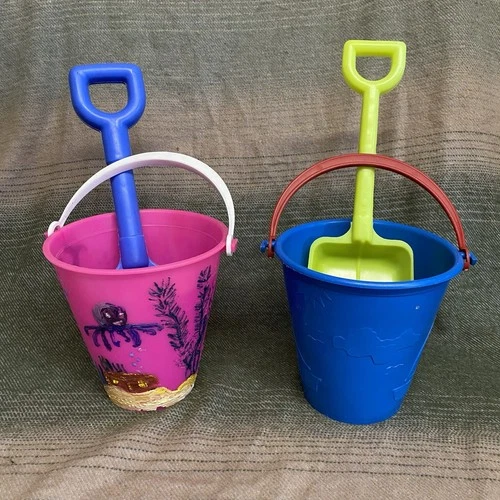 Vintage Plastic Bucket & Spade Sets X 2 - Springwell Plastics Sunshine Mouldings