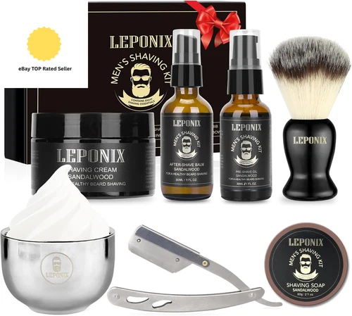Shaving Kit for Men, Shaving Set of Sandalwood Shaving Cream, Mens after Shave