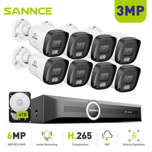 SANNCE 3MP CCTV System Audio In POE IP Camera Security Bullet 6MP 8CH H.265 NVR