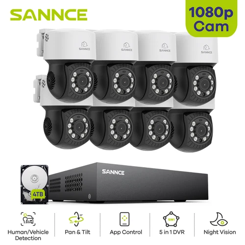 SANNCE 1080P CCTV CAMERA SYSTEM PAN /TILT 2MP 8CH VIDEO DVR AI HUMAN DETECTION