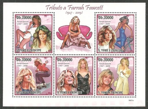 ST THOMAS AND PRINCE 2009 FILMS CINEMA FARAH FAWCET CYCLING M/SHEET MNH