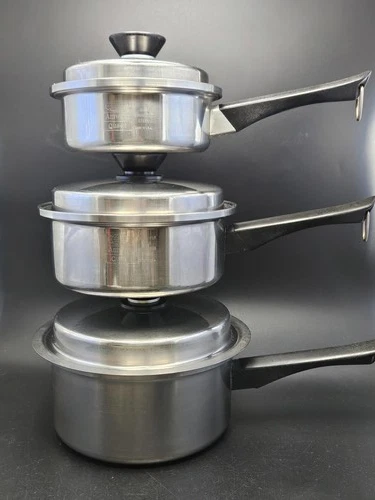 Amway Queen 7-Pc Stainless Saucepan Set - 1qt 2qt 3qt Pots Lids & Double Boiler