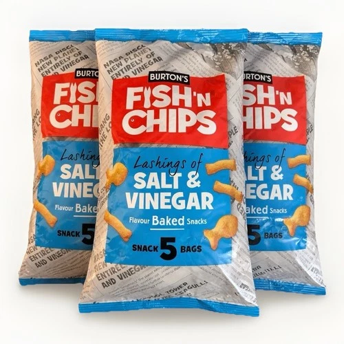 Burton's Fish n Chips Salt & Vinegar Snacks Biscuits 25g x 15 Bags Pub Bar