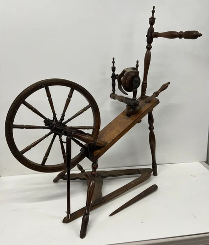 Antique 19th Century Victorian Decorative Pedal Saxony Spinning Wheel