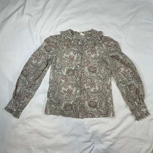 Vtg Sax Fifth Ave Paisley Blouse Ruffle Collar LS Button Up Top Girls Size 10