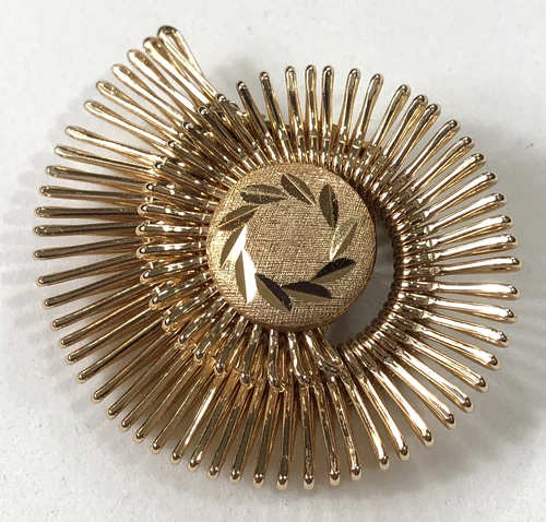 Vintage Textured Gold Tone Repousse Leaf Design Dress Scarf Clip / Brooch NOS EC