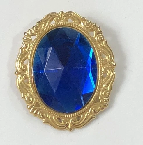 Jeri-Lou Scarf Clip Gold Tone Blue Faux Jewel 2 inch - Vintage