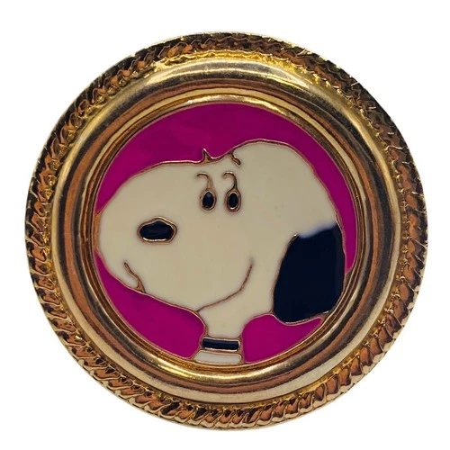 Vintage Peanuts Snoopy Goldtone Enameled Round Pink White Black Scarf Clip Ring