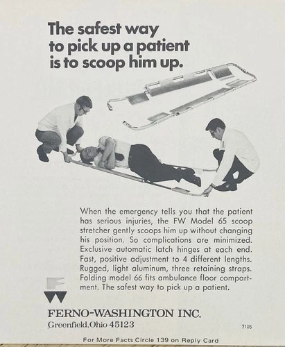 1971 AD.(N30)~FERNO-WASHINGTON CO. GREENFIELD, OHIO. FW MODEL 65 SCOOP STRETCHER