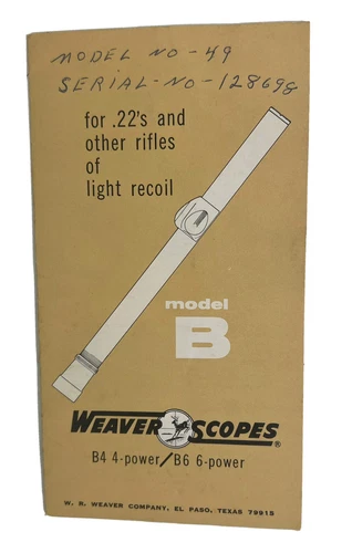 1964 Weaver Scopes Model B4 & B6 Brochure Specs Features Prices