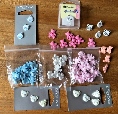 JOB LOT BABY BUTTON BUNDLE TEDDYS & CATS IDEAL FOR BABY KNITTING CRAFTS ETC