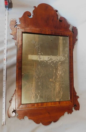 Antique American Chippendale mirror mahogany c1820 scroll cutouts line inlays