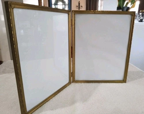 MCM Brass Metal Gold Picture Photo Double Frame For 8x10" Free standing Vintage
