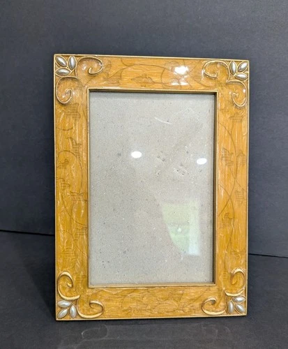 Vintage Connoisseur Picture Frame Yellow Enamel Gold Scroll Pearl Corners 3.5x5