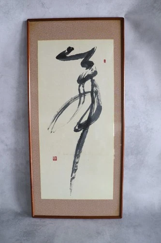 Japanese Calligraphy Art “Mai” Ink Painting Framed Wall Hanging Scroll Style