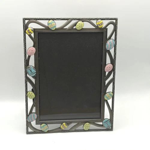 Easter Egg Enamel Metal Picture Frame 5x7 Pastel Spring Decor Pewter Tone READ