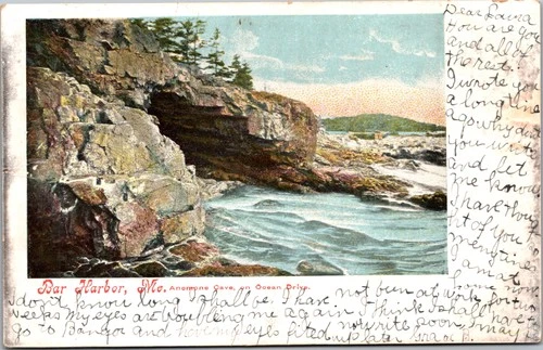 Postcard ME Bar Harbor Anemone Cave on Ocean Drive 1906