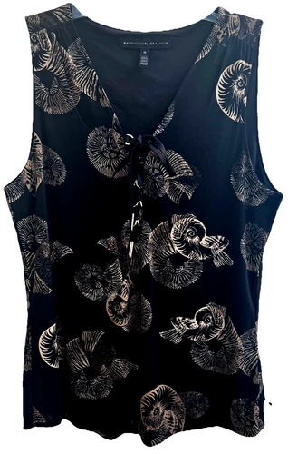 WHBM Women’s (M) Jersey Knit Tank Black Nautical Shell AOP Spandex Neck Tie NWOT
