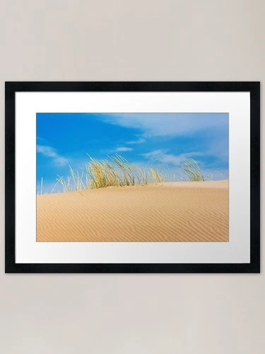 Sea grass and dunes against a blue Framed Wall Art Poster Canvas Print Picture