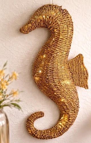 Seahorse Wall Decor Woven Seagrass 36” Coastal Hanging Tray Subtle Shimmer