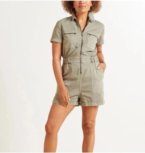Rails Effie Utility Romper Shortalls M Heavy Denim Canvas Army Green Seagrass