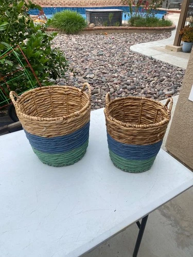 Set of 2 Pair Vintage Woven Braided Seagrass Baskets w/Handles 12”& 11”