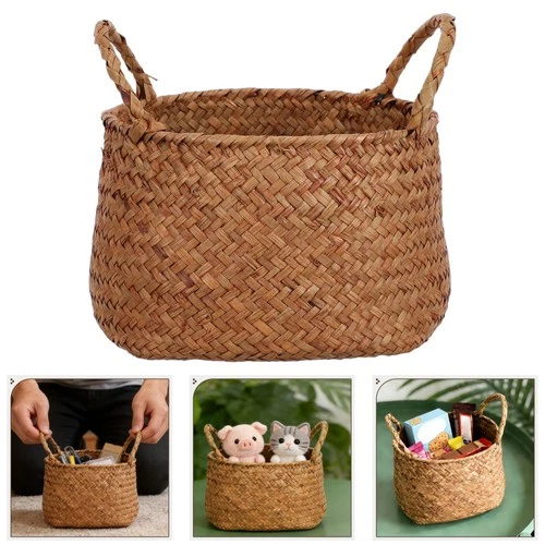 Woven Basket Organizer Box Brown Seagrass Storage Basket For Home Shelves