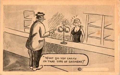 1940s Saucy Novelty Postcard - Man & Bra Shop Humor - Unused - Comic Seaside