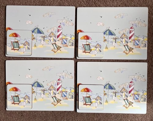 🌊Coastal Beach Scene Placemats & Coasters Set, Nautical/Seaside/Beach Huts