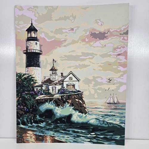 Lighthouse Crashing Waves Finished Acrylic Painting Paint By Number Sea 20x 16