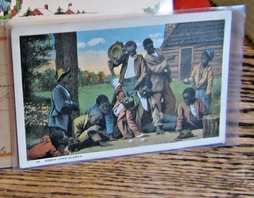 Black Americana Antique Postcard white border c1920s? Seben Come Eleben