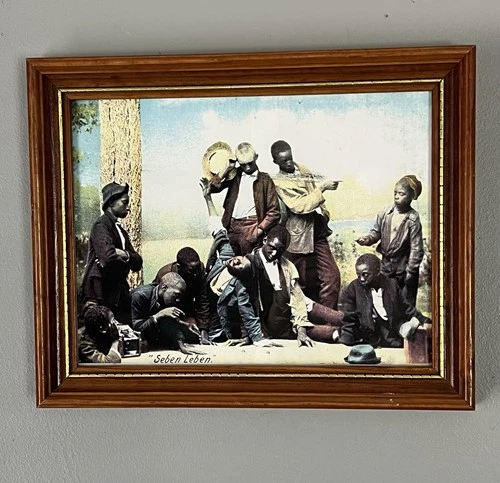 Vintage "Seben Leben" African American Dice Game Color Lithograph 12.5x15.5