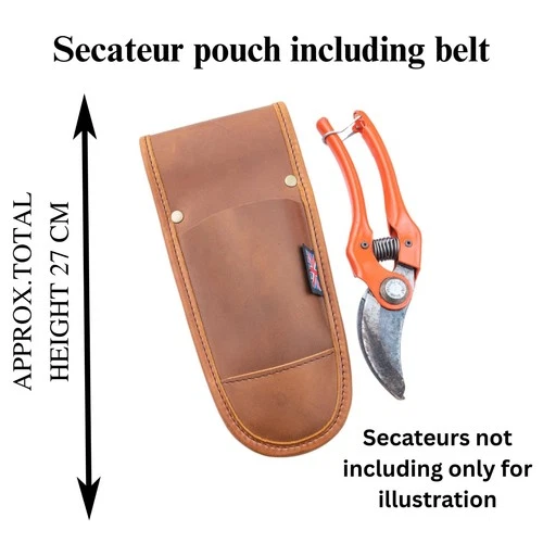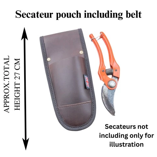 Secateur pouch and belt to hold secateurs brown oiled leather dark brown