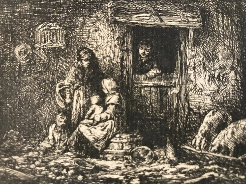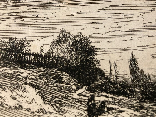 Very Beautiful Engraving Charles Emile Jacque Dry Point Print 19th 1830 Barbizon