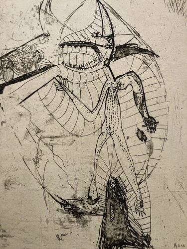 Beautiful Engraving Antoine Agra Surrealist Surrealism Drypoint Print 1970 Art
