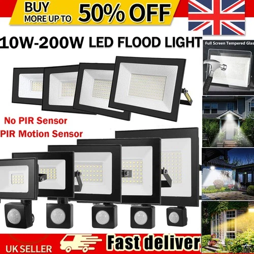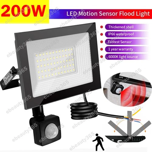 Flood Light Floodlight 10-200W LED PIR Motion Sensor Outdoor Yard Security Lamp