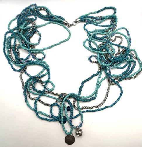 Turquoise Seed Bead Necklace Multi Strand Long Layered Chain Boho 52 in