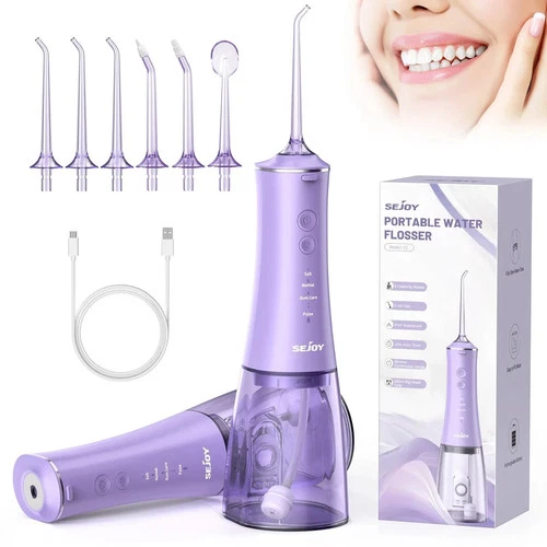 SEJOY Water Flosser Cordless 300ml Water Dental Flosser Oral Cleaner 5 Jet Tips