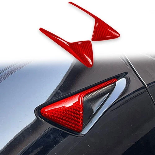 Red Carbon Fiber Side Camera Protection Cover For Tesla Model Y 3 2021-2022