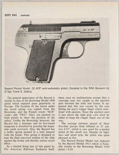 1972 Magazine Photo Bayard Model .32 ACP Semi-Automatic Pistols Hammer Fired