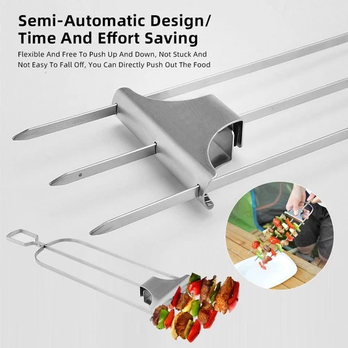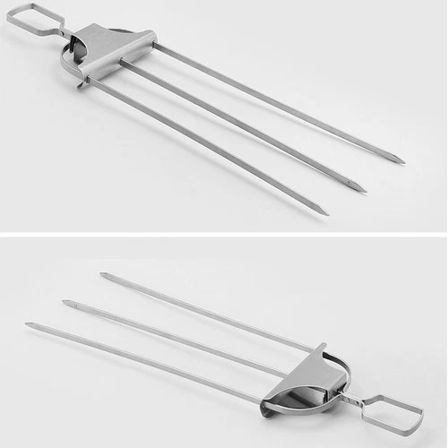 Stainless Steel Skewers Semi-Automatic BBQ Outdoor Three-Pronged Grill Fork For