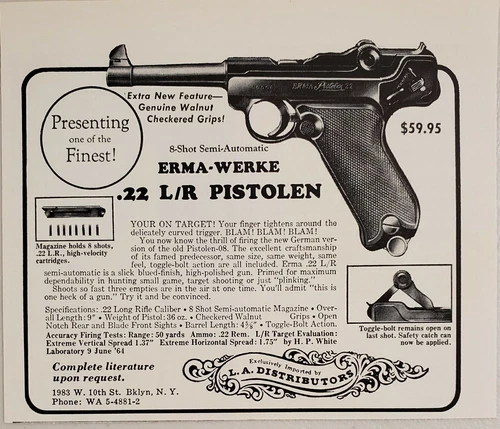 1966 Print Ad Erma-Werke .22 L/R Pistolen 8-Shot Semi-Automatic Brooklyn,NY