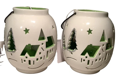 Ceramic Holiday Lighted Lanterns-w/Battery Operated LED Lights by Publix Brand🏡