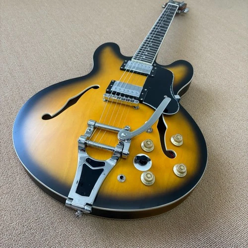 Yellow ES-335 Electric Guitar Semi-Hollow Body Bigsby System